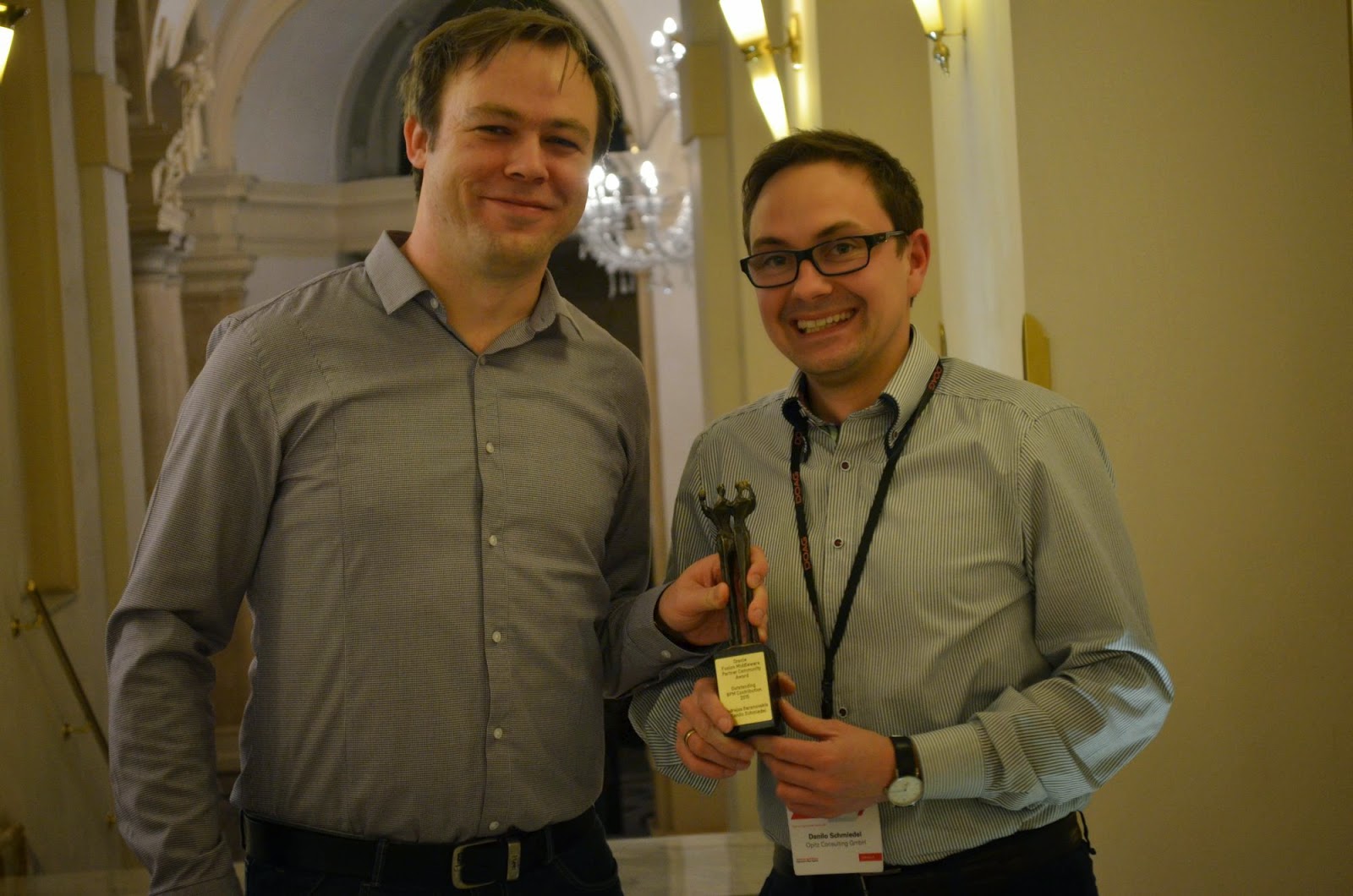 We have received award for Outstanding ACM/BPM Contribution 2015. This award was given to me and my colleague - Danilo Schmiedel, for successful work in joint ACM/BPM and ADF projects, by Oracle Fusion Middleware Partner Community. Thanks and really proud to be a part of the community !