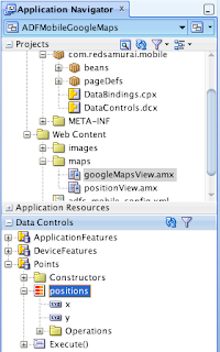1. Google Maps embedded using ADF Mobile Geographical Map component (8.5.14 How to Create a Geographic Map Component)