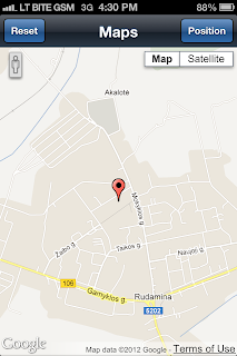 Once position is located, press Back and Google Maps will flip back with a zoom into your position displayed on the map (my real location is displayed here :):