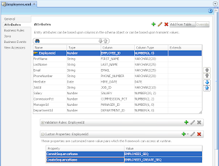 We all know how to insert new records using ADF BC. But if you have a sequence in the DB for primary key attribute and there is requirement to make sure assigned sequence values are always gapless - few extra steps are needed. When you hit Create button, ADF will assign sequence value immediately - often user may rollback transaction and sequence value will be lost. In order to prevent gaps in the sequence we can use two sequences - one temporary for Create and then real sequence will be applied during commit time from doDML method.